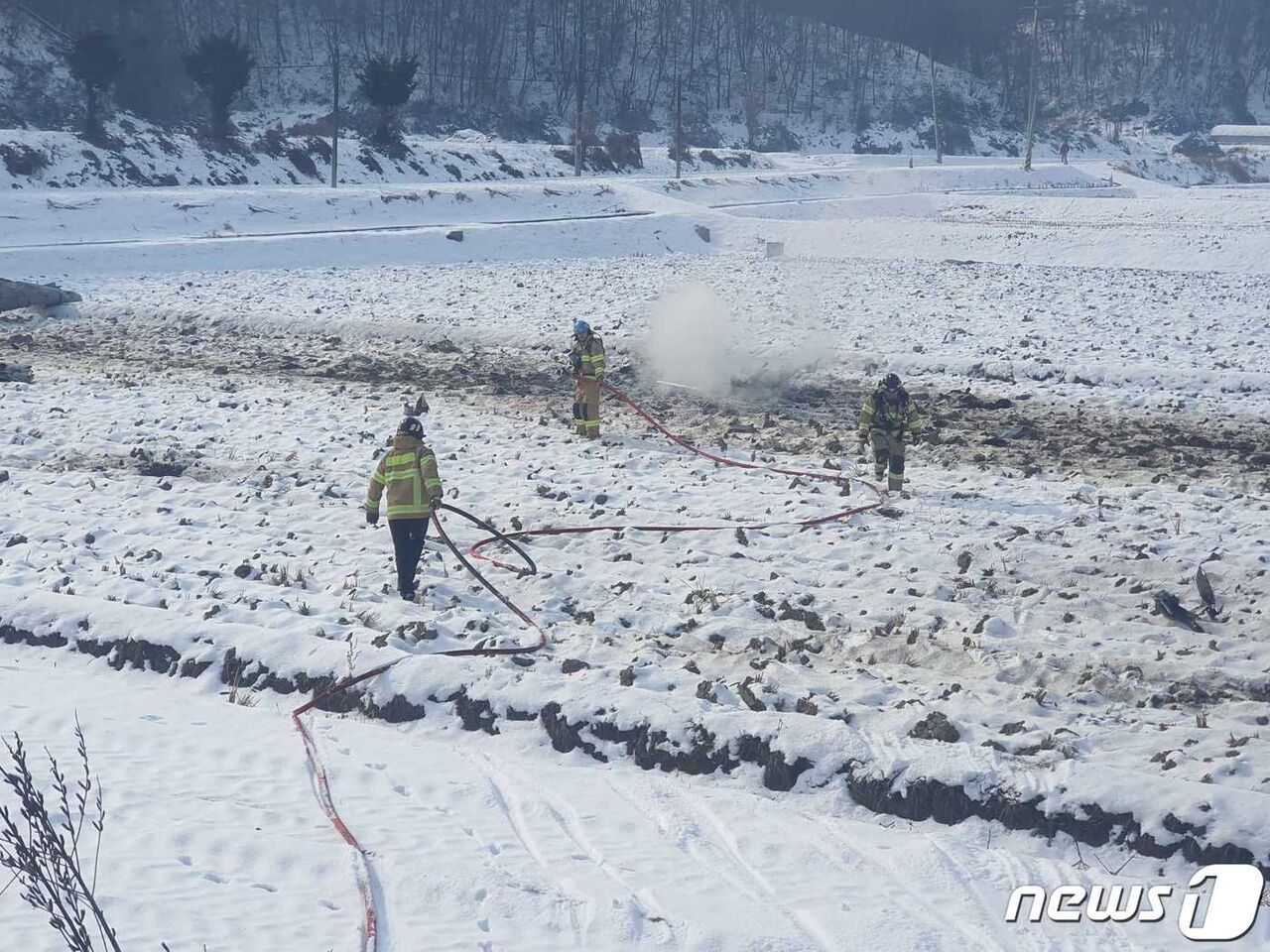 26日午前11時40分ごろ江原横城邑半谷里のある農地に空軍第8戦闘飛行団KA-1攻撃機が墜落、